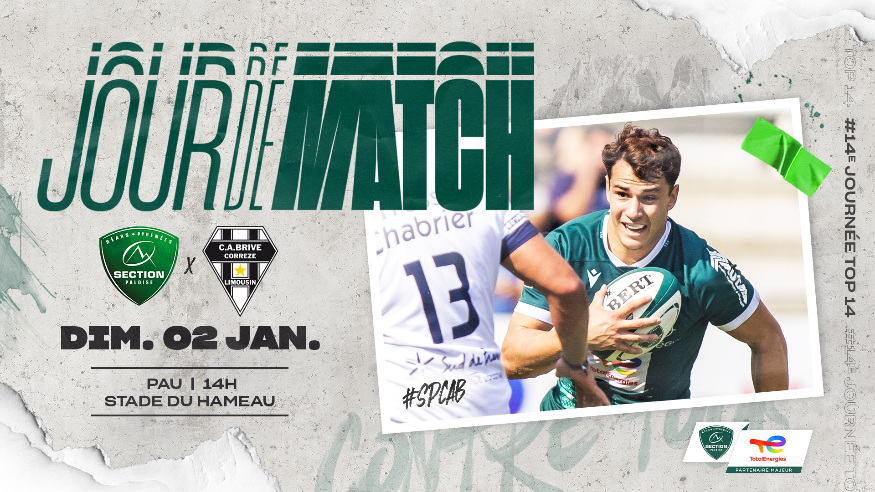Reprise du Top 14 en Béarn ! Pour bien commencer l'année 2022, Tubes Radio vous invite à suivre la rencontre Section Paloise Vs Brive au Stade du Hameau. Pour cette 14ème journée du Top 14, venez ambiancer et soutenir nos joueurs vert & blanc.